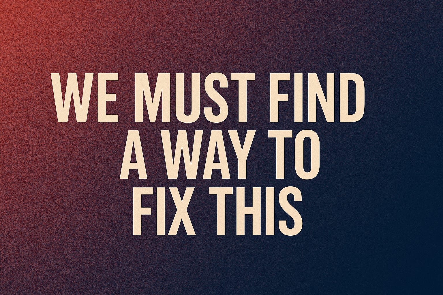 We must find a way to fix this — because if not us, then who? And if not now, then when?